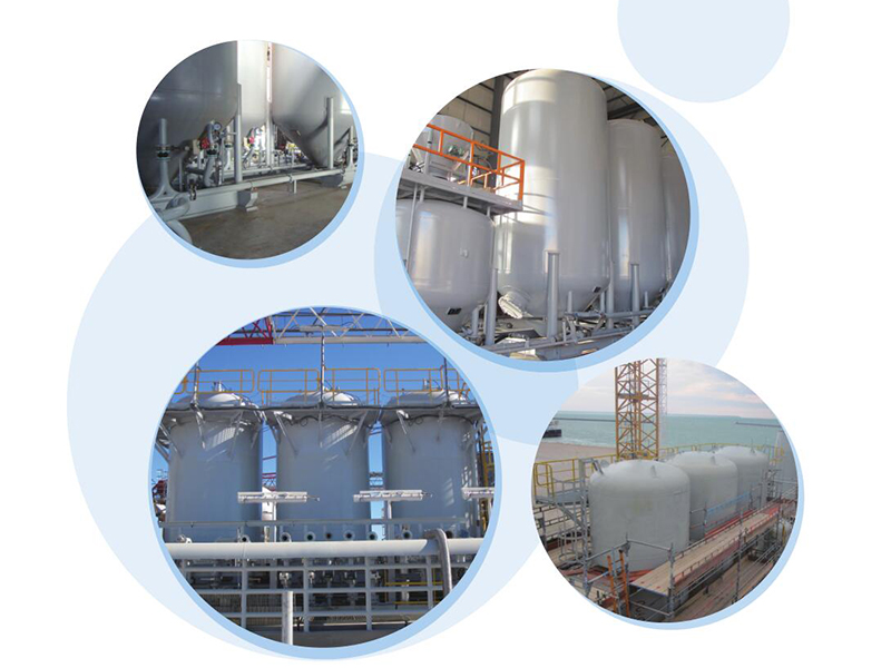 主要應(yīng)用于海洋鉆井平臺(tái)鉆井固井用散料(水泥、重晶石、膨潤(rùn)土等)的儲(chǔ)存、計(jì)量、輸送等。系統(tǒng)由散料罐、除塵罐、緩沖罐、稱重傳感器、壓力及料位傳感器、遙控閥門及遠(yuǎn)控系統(tǒng)等組成。